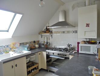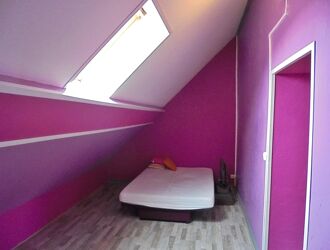 A l'étage, mezzanine, un bureau passant et une pièce mansardée. grenier